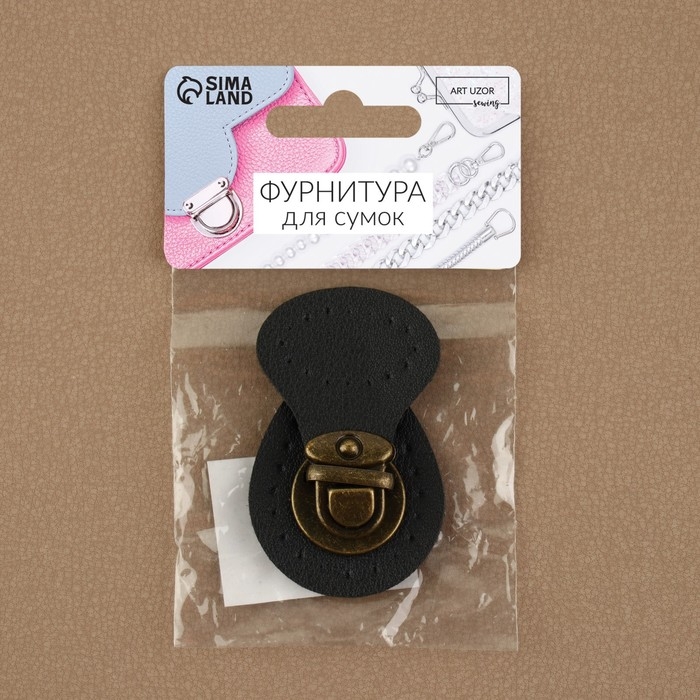Застёжка для сумки, пришивная, 6 × 4 см, цвет чёрный/бронзовый