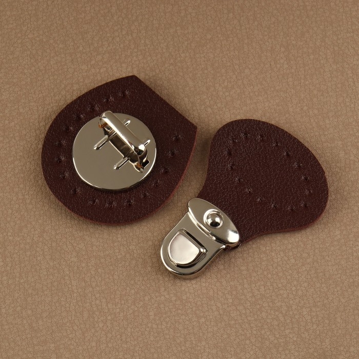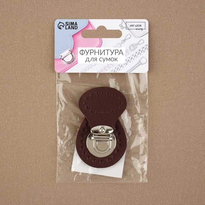 Застёжка для сумки, пришивная, 6 × 4 см, цвет тёмно-коричневый/серебряный