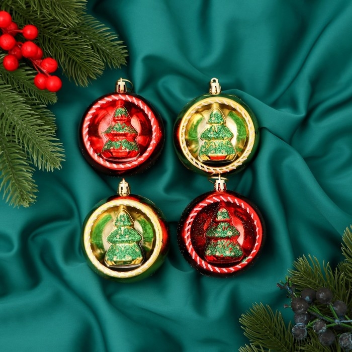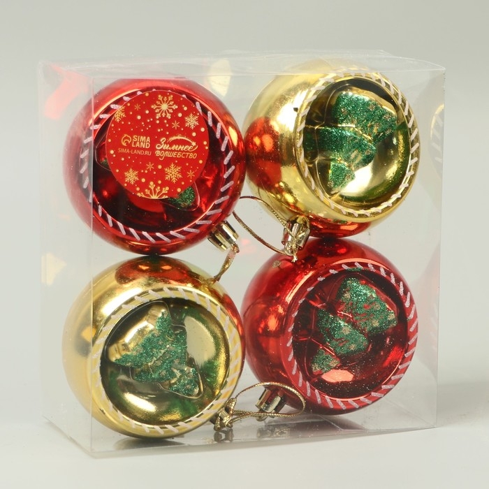 Набор шаров пластик d-8 см, 4 шт "Праздник" красный золото