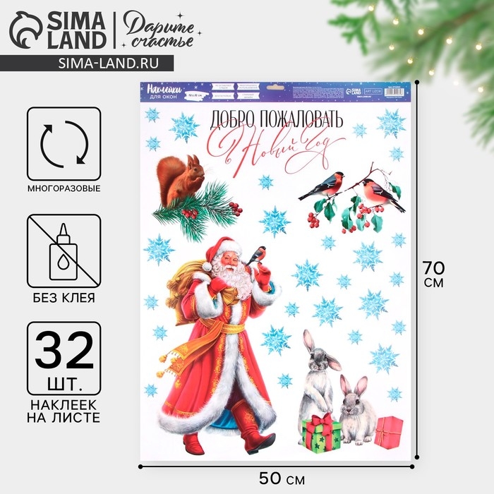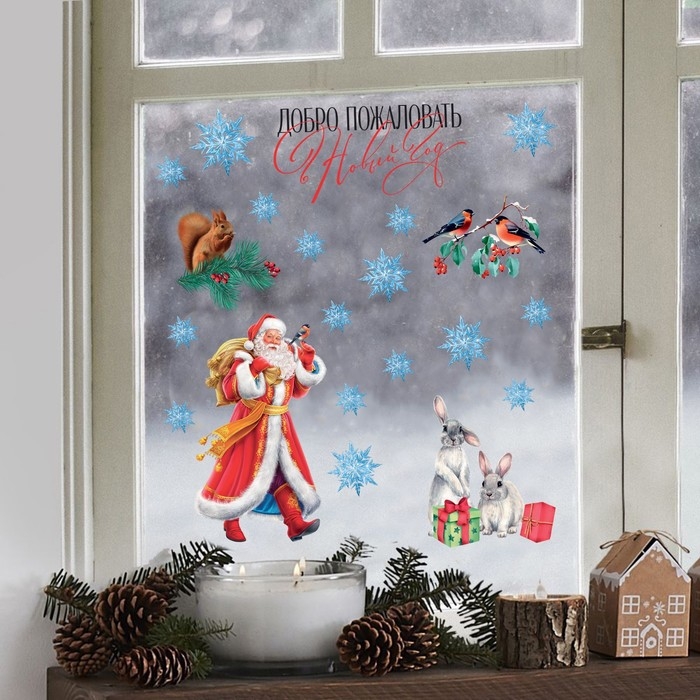 Наклейки новогодние на окна «Добро пожаловать», 50 х 70 см, Новый год