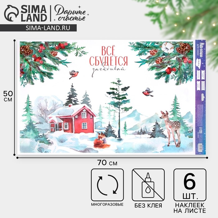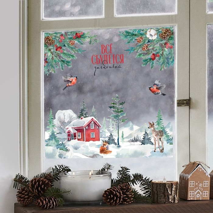 Наклейки новогодние на окна «Всё сбудется», 50 х 70 см, Новый год
