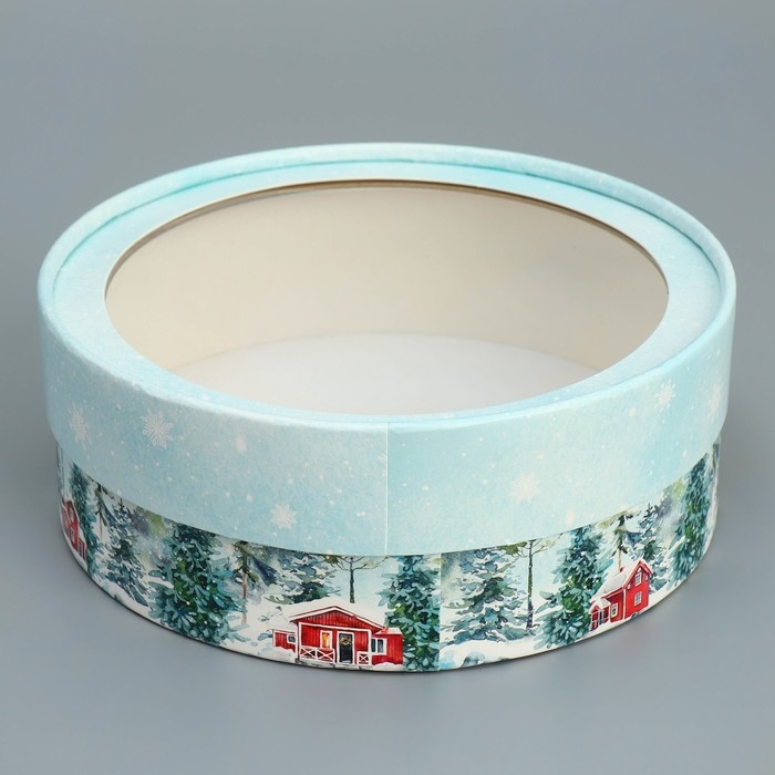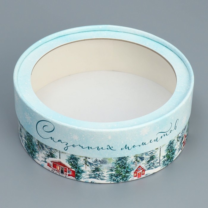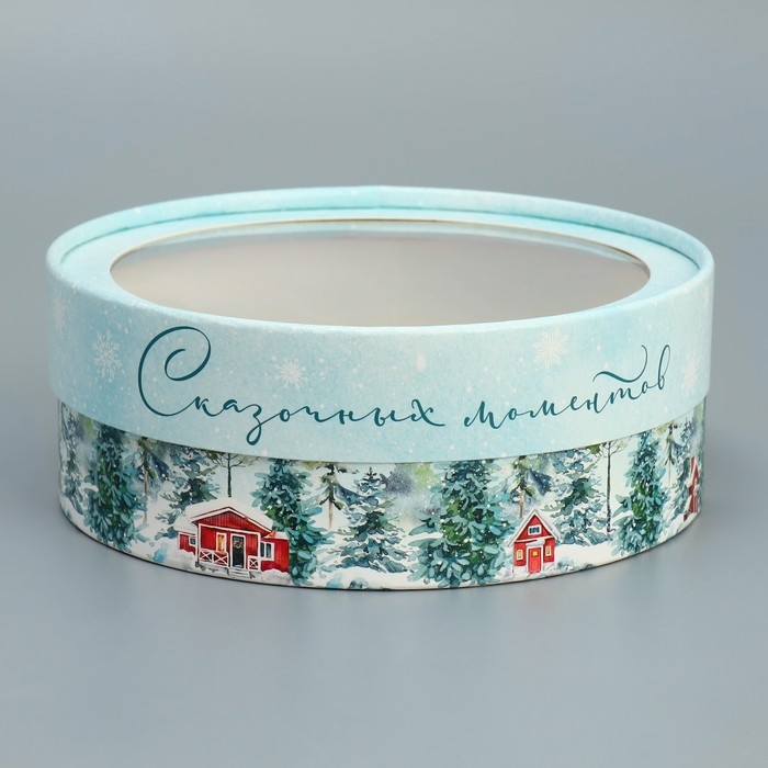 Коробка для макарун тубус с окном «Сказочных моментов», 16 х 16 х 5 см, Новый год