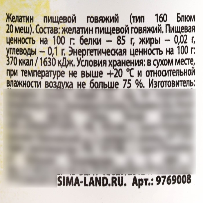 Желатин пищевой 160 Блюм, желирующий и загущающий агент для варенья, суфле и йогуртов, 50 г.