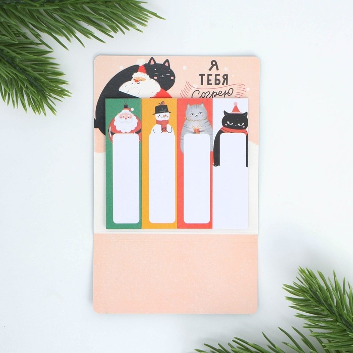 Новый год. Закладки для книг-стикеры «Ставь ёлку, я отвлеку кота», 4 шт, 20 л