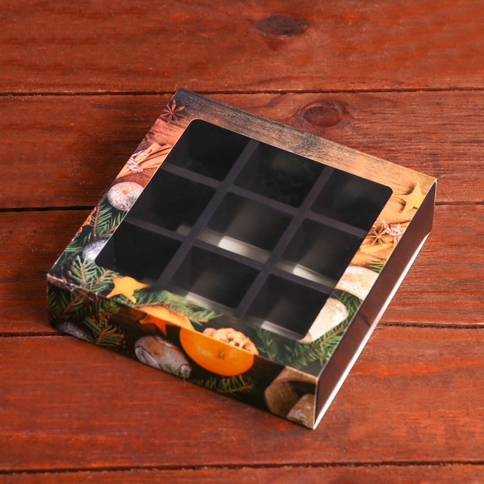 Новый год. Коробка под 9 конфет "Мандарины", 13,7 х 13,7 х 3,5 см, кондитерская упаковка
