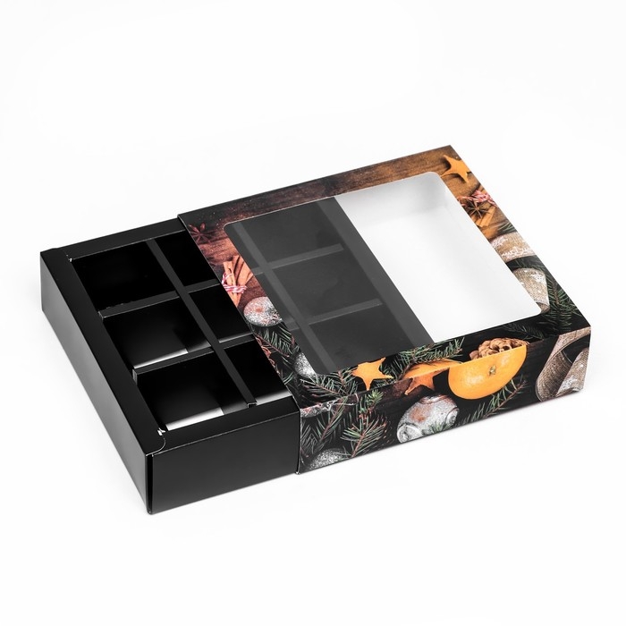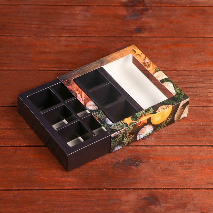 Коробка для 8 конфет + шоколад, с окном "Презент", 17,7 х 17,8 х 3,8 см. Кондитерская упаковка