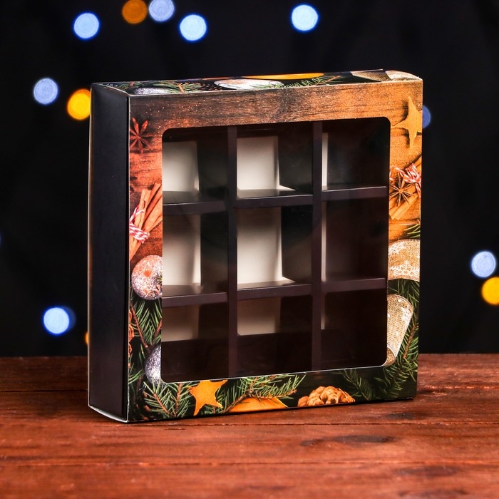 Коробка для конфет, кондитерская упаковка, 9 ячеек, «Нежность внутри», 14.7 х 14.7 х 3.5 см