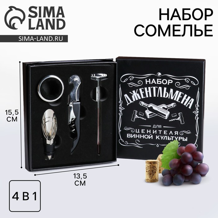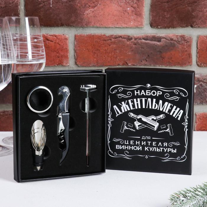 Винный набор: штопор для вина, аэратор, каплеуловитель, термометр «Набор»