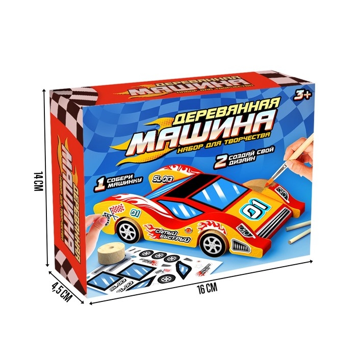 С данным набором малыш сделает своими руками объёмную фигурку-машинку.
