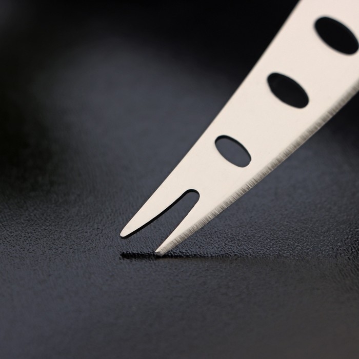 - Нож для сыра с режущей кромкой в виде пилы и отверстиями на лезвии предназначен для нарезания твердых и полутвердых сортов сыра. За счет отверстий сыр меньше будет прилипать к ножу, что упростит вашу работу и сохранит красивый вид кусочков.