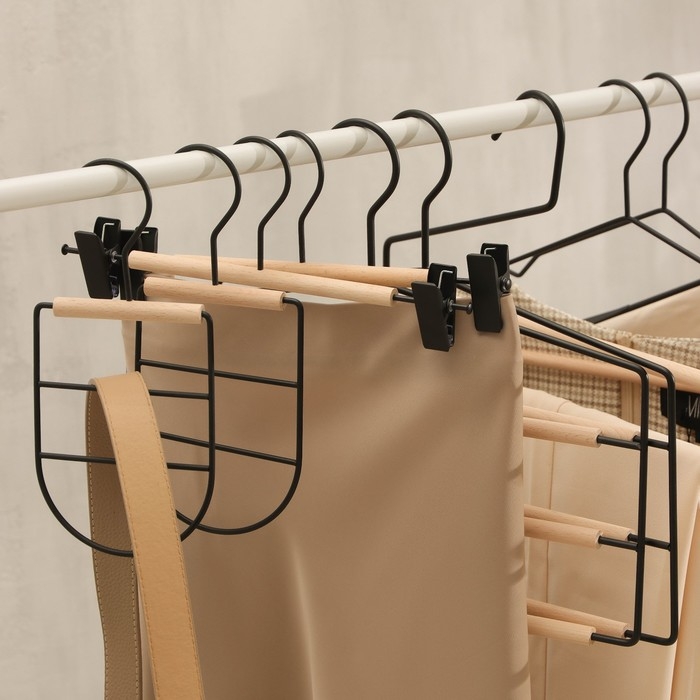 Плечики - вешалки для брюк и юбок Доляна, 45×27 см, 3 шт, с зажимами, деревянные сорт С, широкие плечики