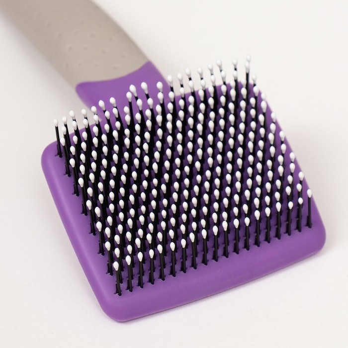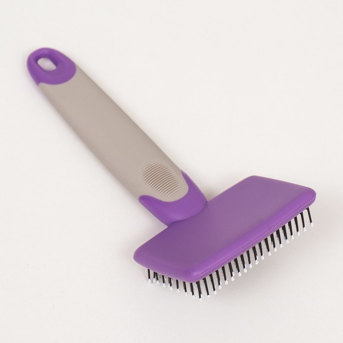 Пуходерка с прорезиненной ручкой, закругленные зубья, малая, 6,5 х 14,5 см, фиолетовая