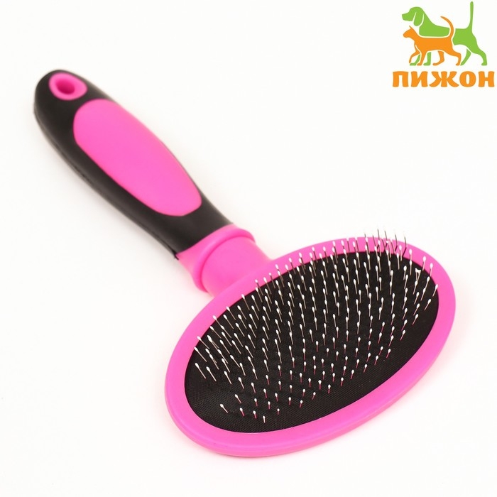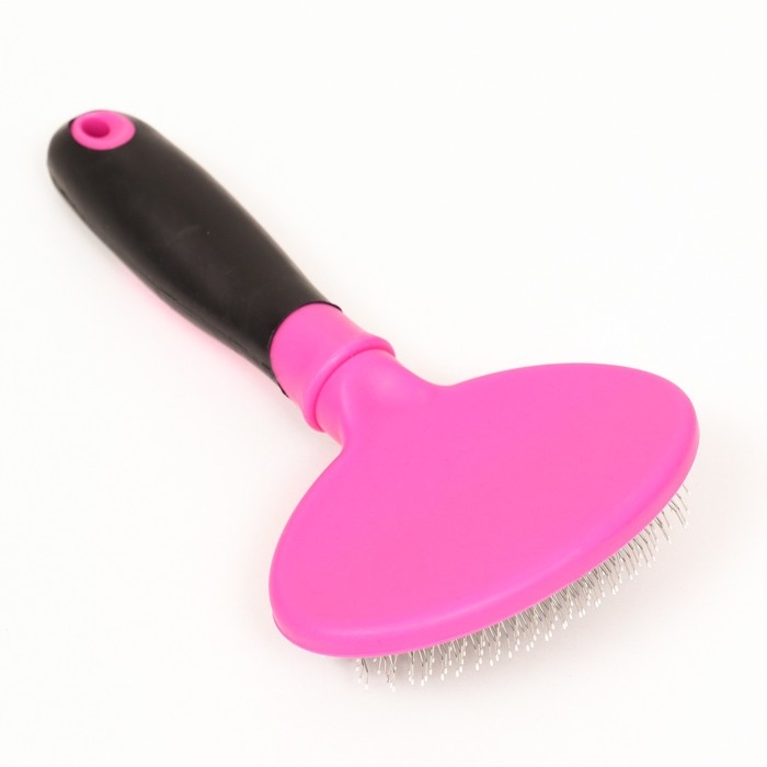 Пуходерка пластиковая мягкая с закругленными зубьями, средняя, 9,5 х 16 см, розовая