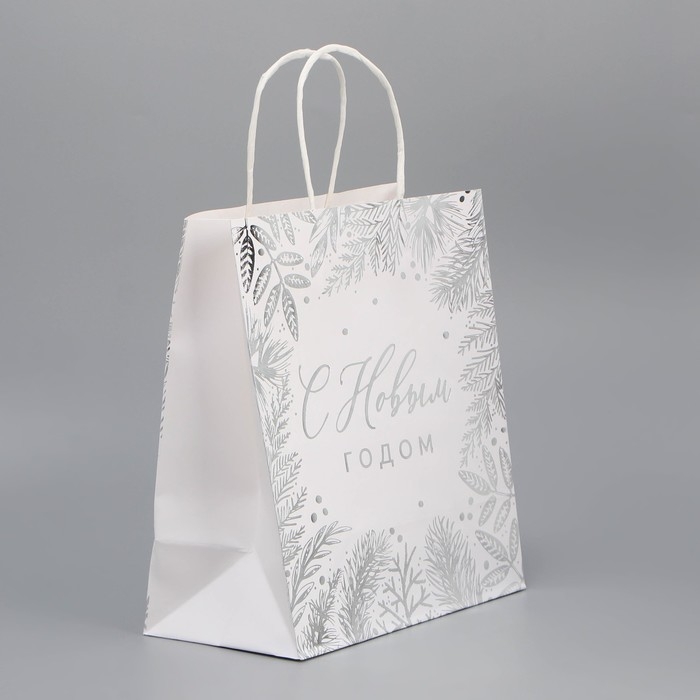 Пакет подарочный новогодний крафтовый «Серебро», 22 х 25 х 12 см, Новый год