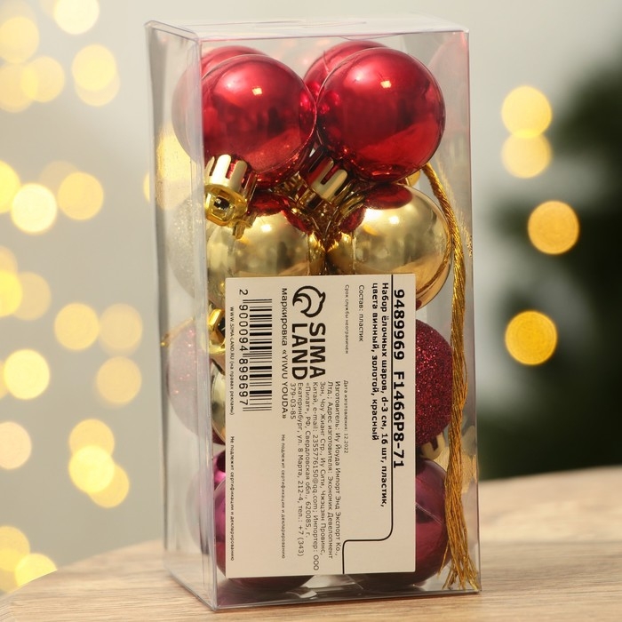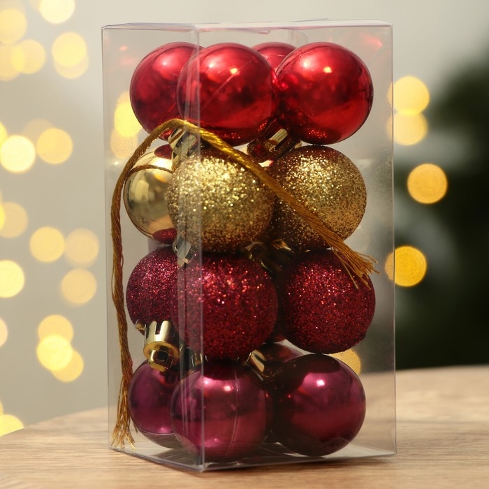Шары ёлочные новогодние, на Новый год, пластик, d=3 см, 16 шт., цвет винный, золотой, красный