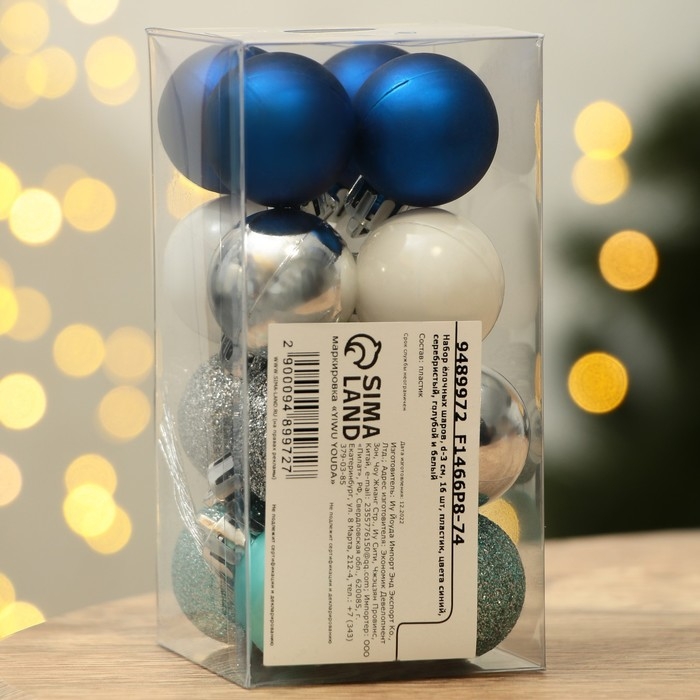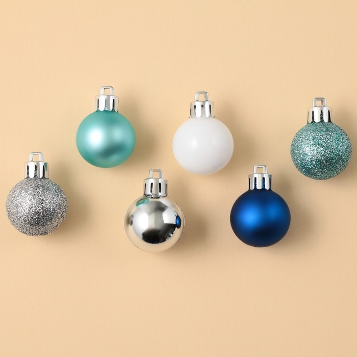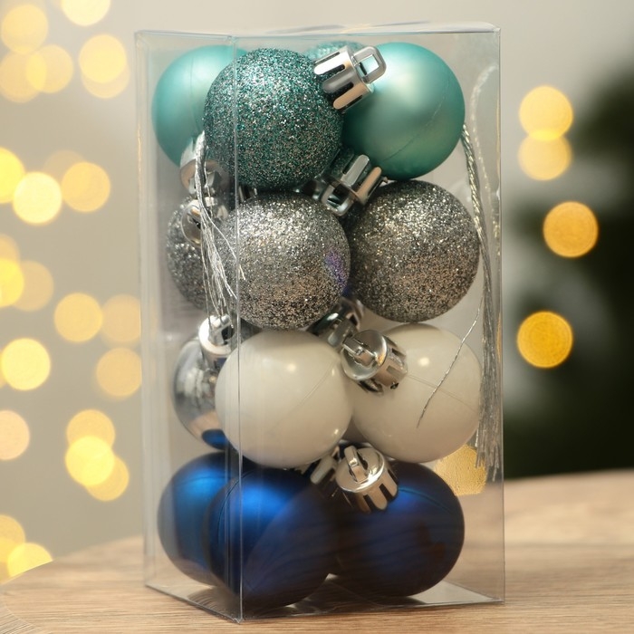 Шары ёлочные новогодние, на Новый год, пластик, d=3 см, 16 шт., цвет синий, серебристый, голубой и белый
