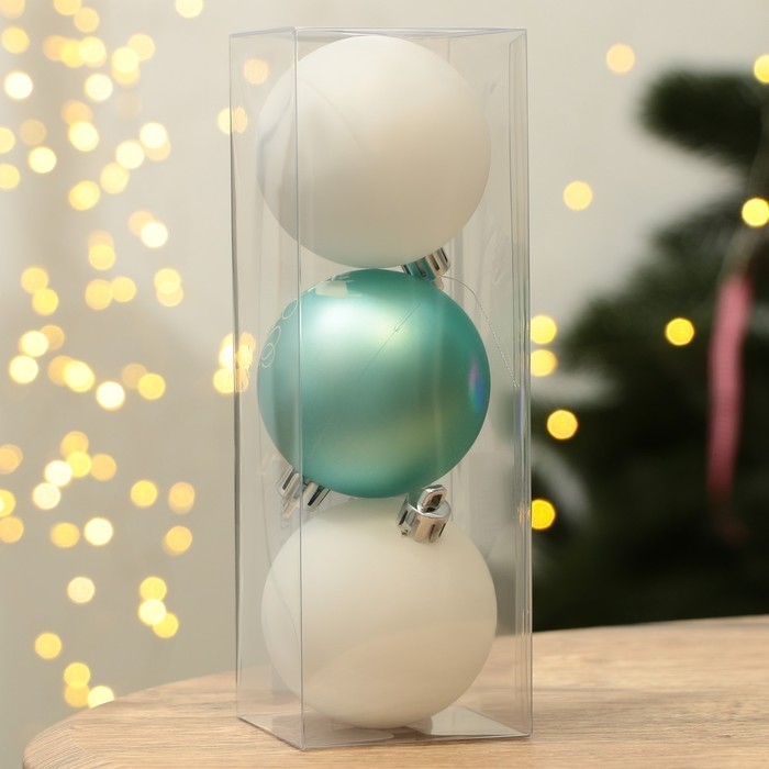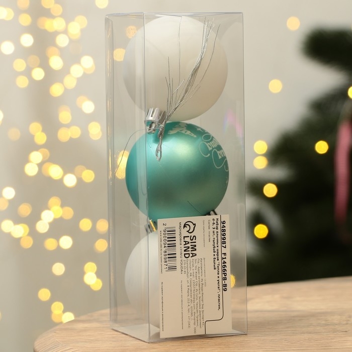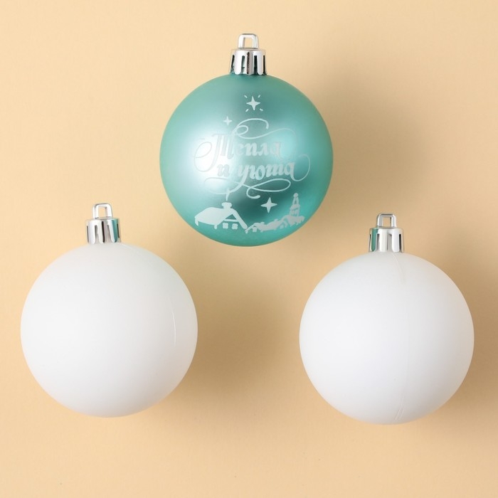 Шары ёлочные новогодние «Тепла и уюта!», на Новый год, пластик, d=6, 3 шт., цвет голубой и белый