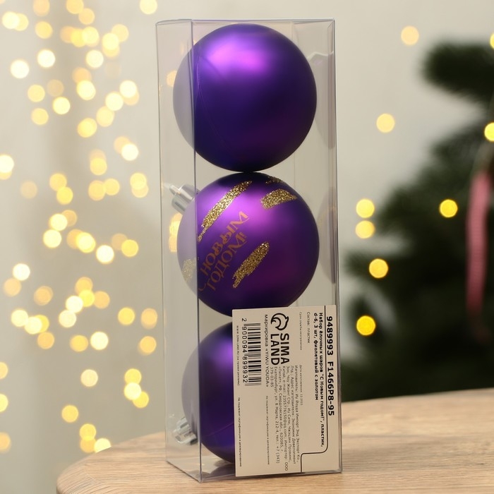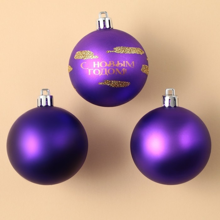 Шары ёлочные новогодние «С Новым годом!», на Новый год, пластик, d=6, 3 шт., цвет фиолетовый с золотом