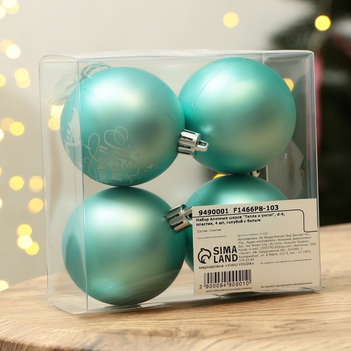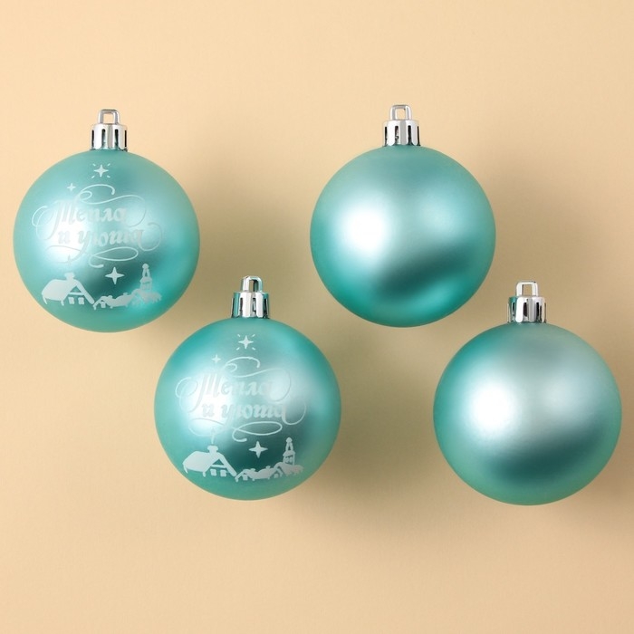 Шары ёлочные новогодние «Тепла и уюта!», на Новый год, пластик, d=6, 4 шт., цвет голубой с белым