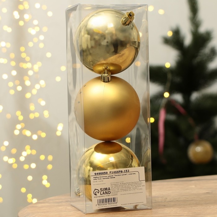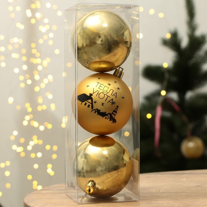 Шары ёлочные новогодние «Тепла и уюта!», на Новый год, пластик, d=8, 3 шт., цвет золотая гамма