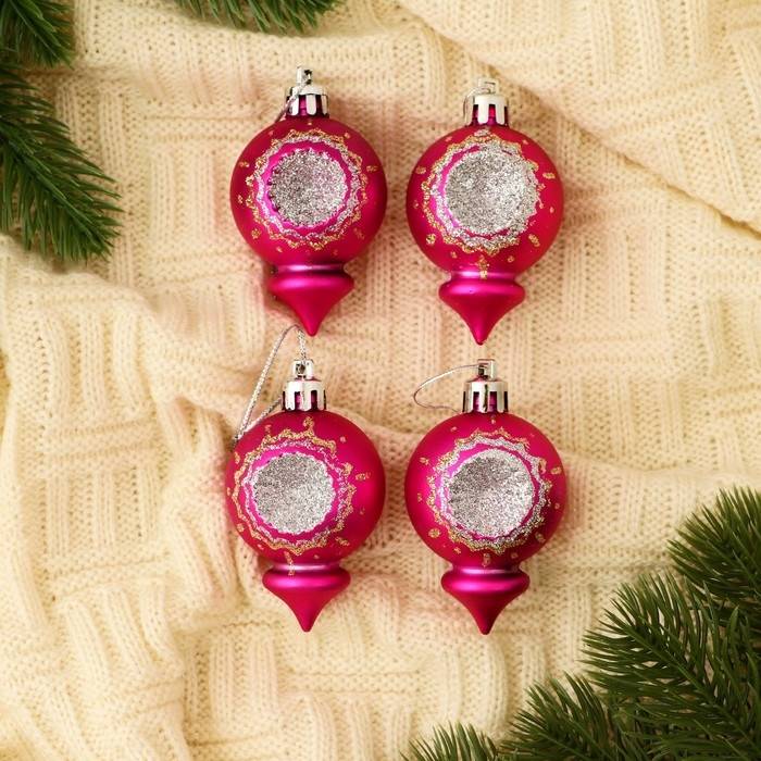 Набор украшений пластик 4 шт "Огонёк" 4х6 см, розовый