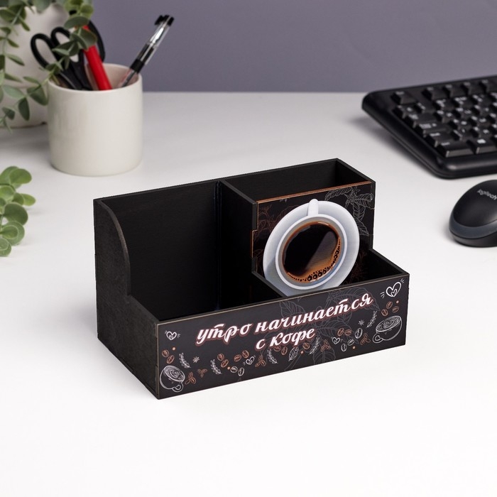 Органайзер для канцелярии "Утро начинается с кофе!" 3 отделения, 18,5х10х10 см