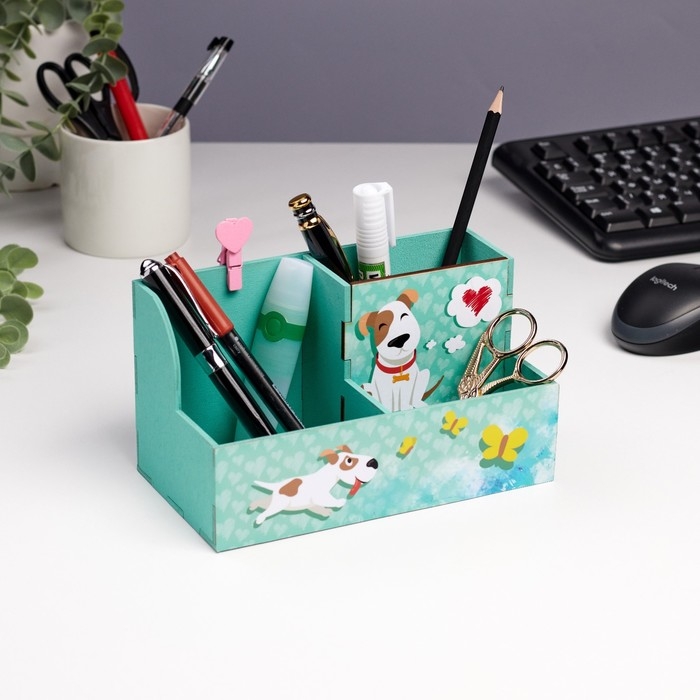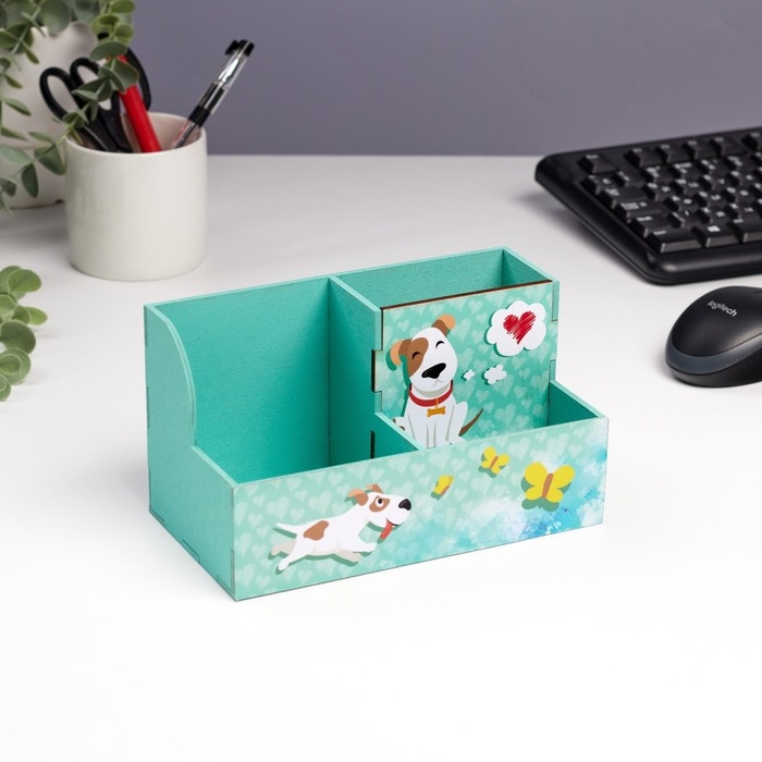 Органайзер для канцелярии "Собачка" сердечки, 3 отделения, 18,5х10х10 см