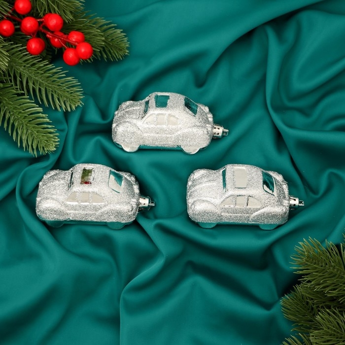 Набор украшений пластик 3 шт "Машинки" 9х3,5 см, серебро