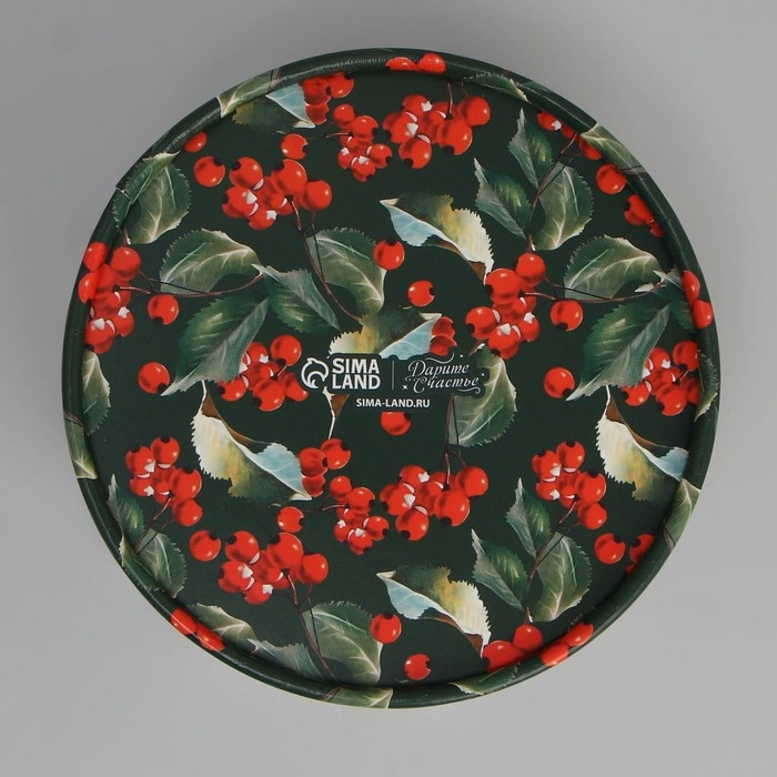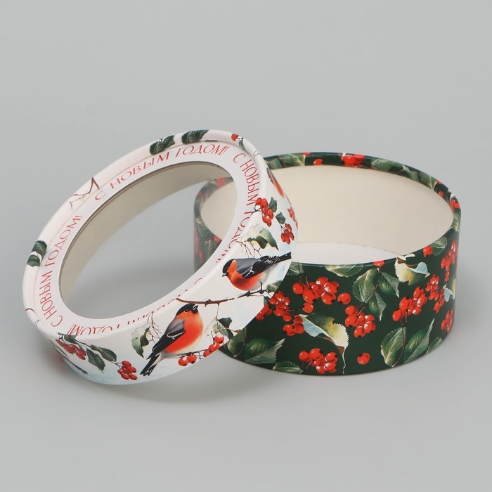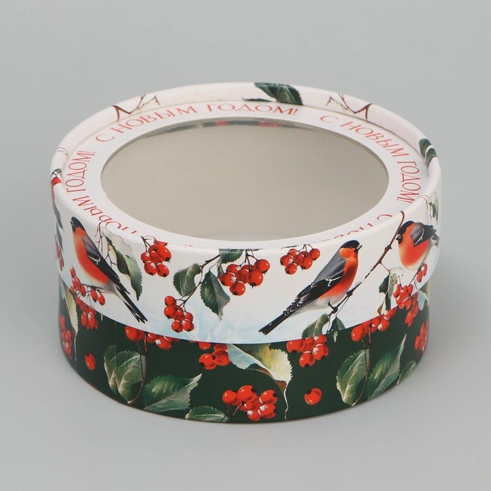Коробка для макарун тубус с окном «Снегири», 12 х 12 х 5 см, Новый год