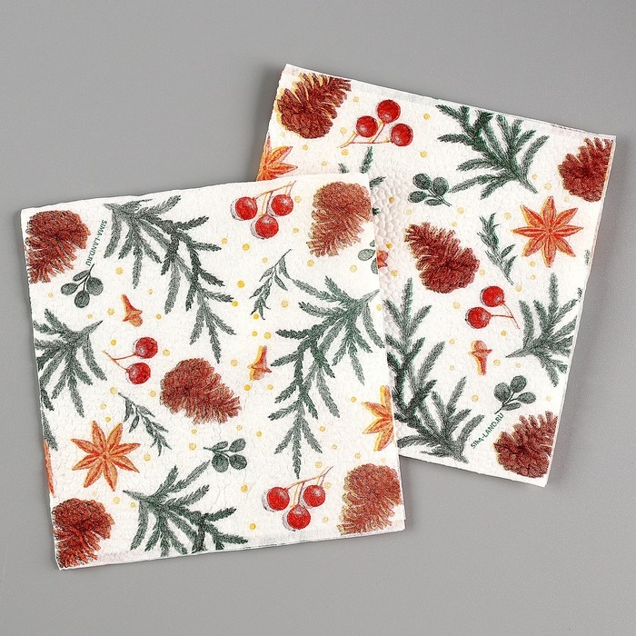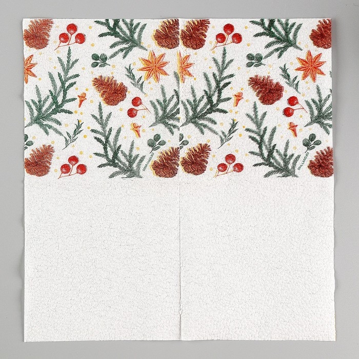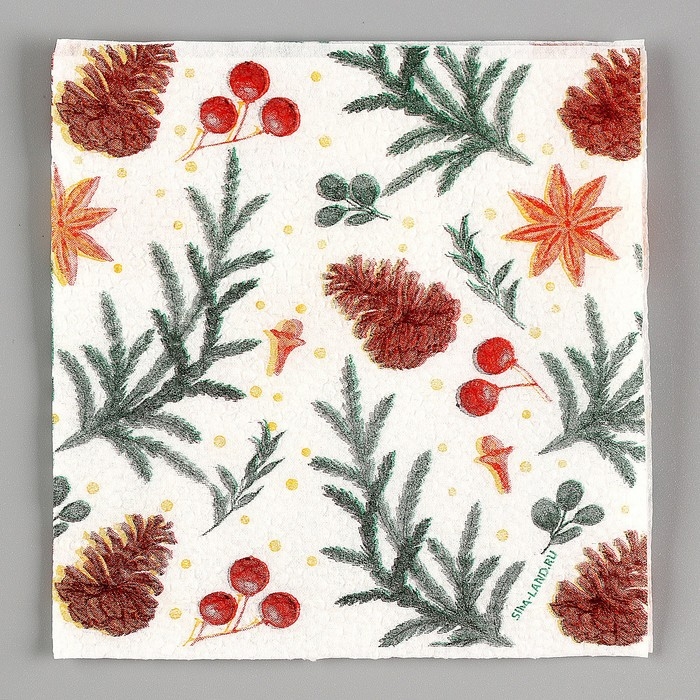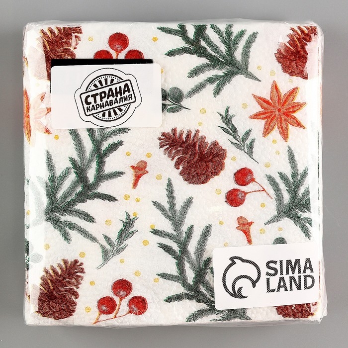 Новогодние салфетки бумажные «С Новым годом: шишки», однослойные, 24х24 см, 20 шт.
