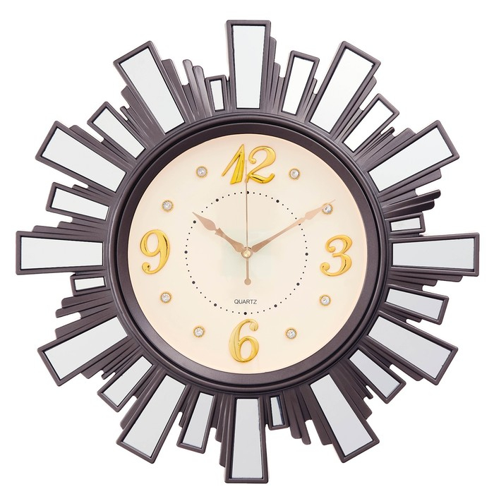 Часы настенные, серия: Интерьер, "Лучики Солнца", плавный ход, с зеркалом, d-53 см, серый