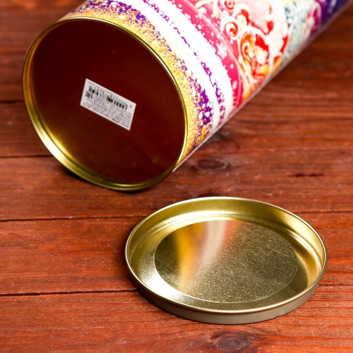 Подарочная туба выполнена из плотного картона и металла. Изделие оформлено красочным изображением. Туба оснащена крышкой. В комплект входит подвесное декоративное украшение.