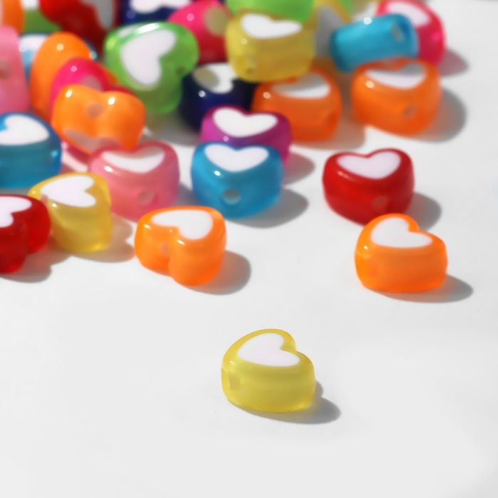 Бусина из пластика «Сердце», 10×10 мм, (набор 50 г), цвет МИКС