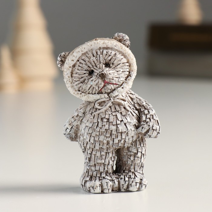 Сувенир полистоун "Мишка в шапке/колпаке, стоит" серый МИКС 4х3х7 см