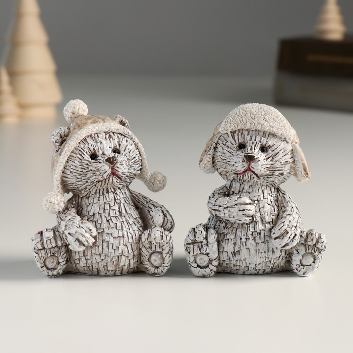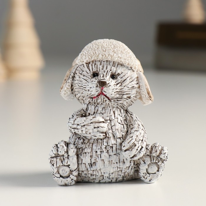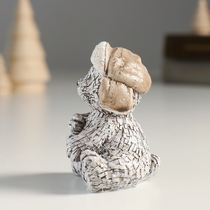 Сувенир полистоун "Мишка в шапке-ушанке, сидит" серый МИКС 6х5х7,5 см