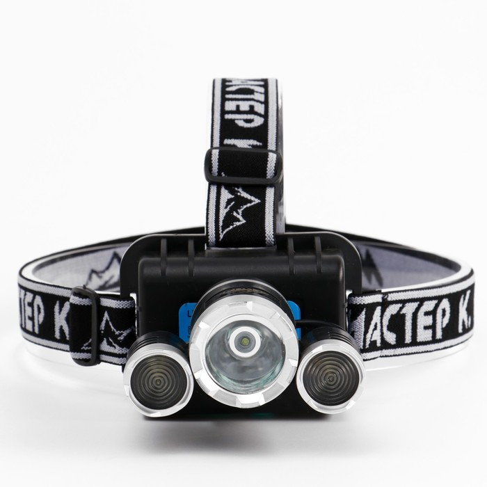 Фонарь налобный аккумуляторный "Мастер К", 10 Вт, 1200 мАч, 600 лм, 8 х 9 х 6 см