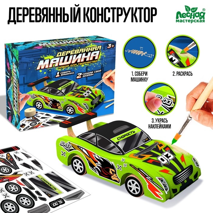 Деревянный конструктор «Создай машинку», цвет зелёный