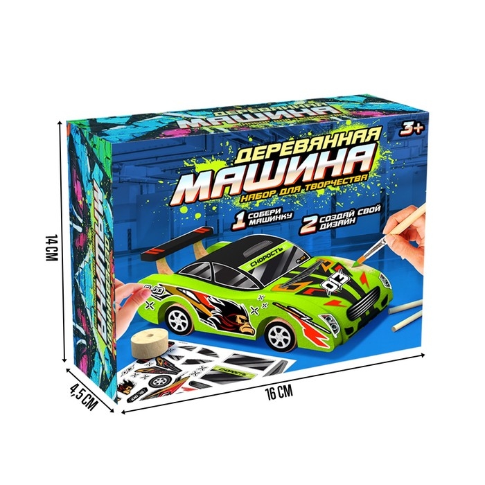 С данным набором малыш сделает своими руками объёмную фигурку-машинку.