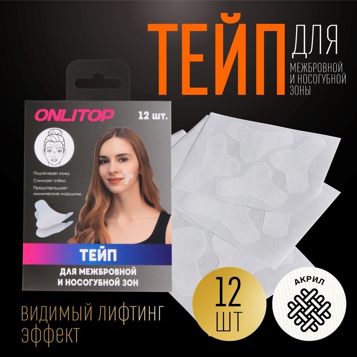 Тейп для межбровной и носогубной зоны, набор, 12 штук
