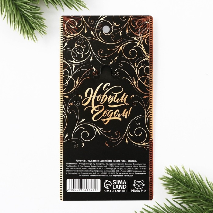 Брелок новогодний, для ключей «Денежного нового года» кожзам., 4 х 8.5 см
