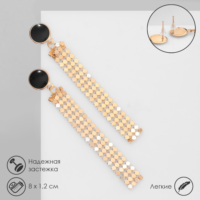 Серьги висячие «Прямоугольник» диско, цвет чёрно-золотистый, 8 см