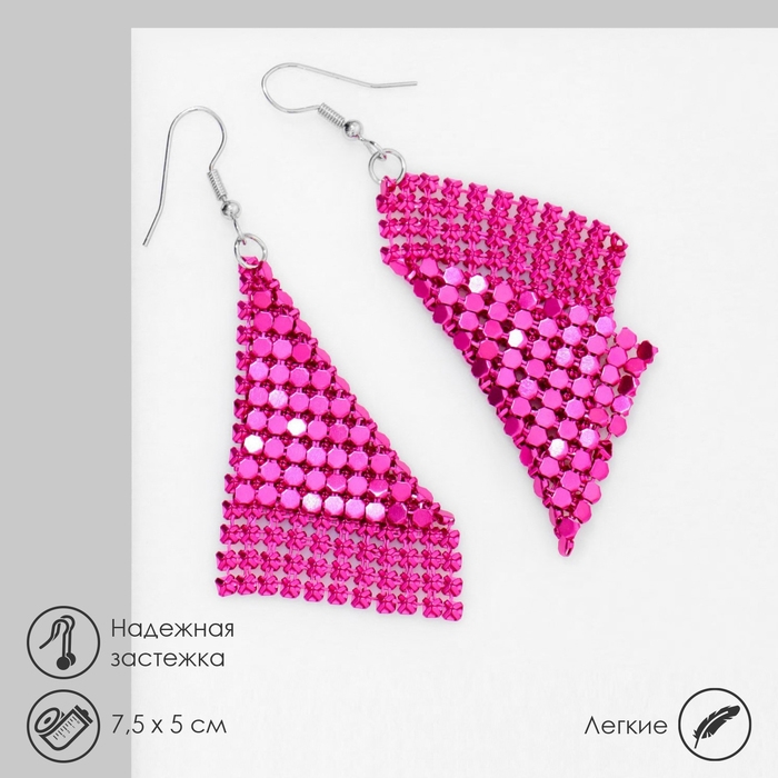 Серьги висячие «Ромб» диско, цвет розовый в серебре, 7,5см