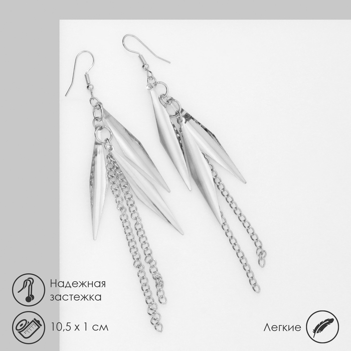 Серьги висячие «Пика» с цепочками, цвет серебро, 10,5 см