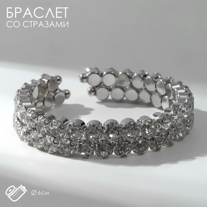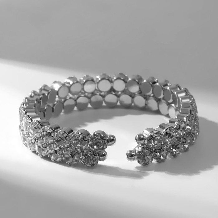 Браслет со стразами «Шайн» 2 ряда, цвет белый в серебре