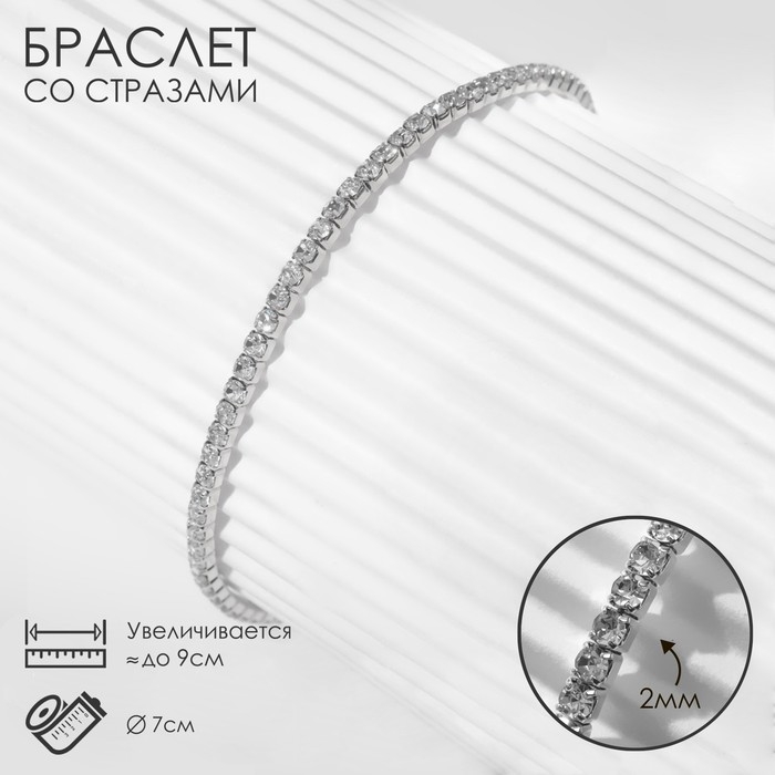 Браслет со стразами «Сияй» 2 ряда, цвет белый в серебре, 18 см