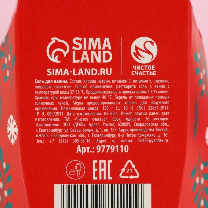 Соль для ванны «Я не подарок, но и ты не Санта», 150 г, аромат вишнёвого компота, Новый Год