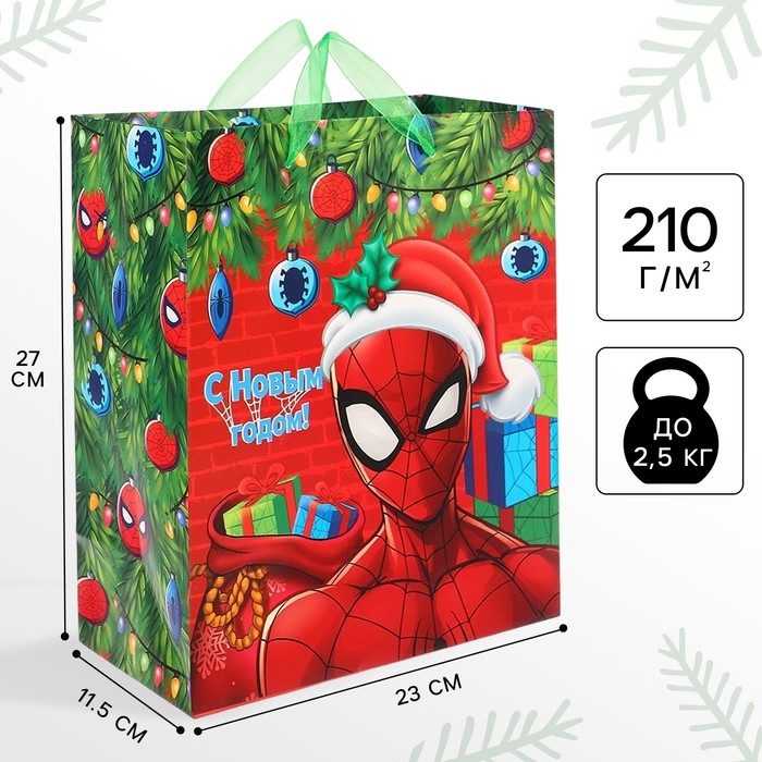 Пакет подарочный "С Новым годом!", 23х27х11.5 см, упаковка, Человек-паук