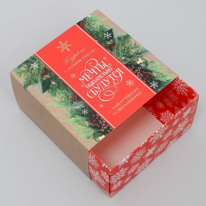 Подарочная коробка складная, новогодняя«Мечты сбудутся», 14 х 14 х 8 см, Новый год