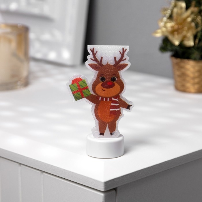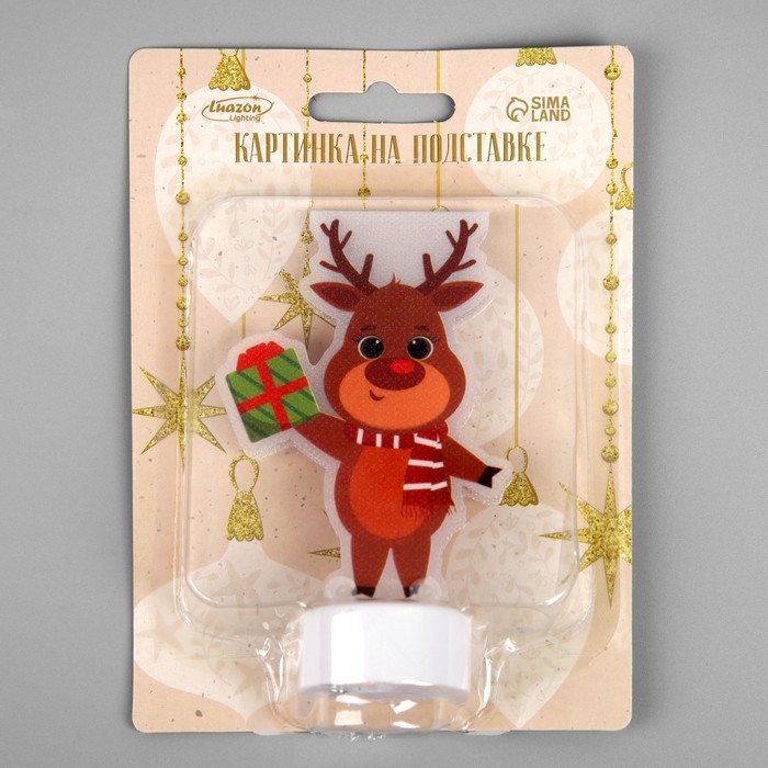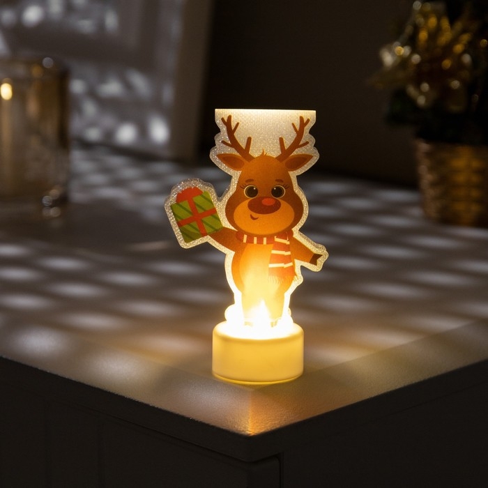 Световая картинка на подставке «Оленёнок» 11 см, батарейки, свечение тёплое белое