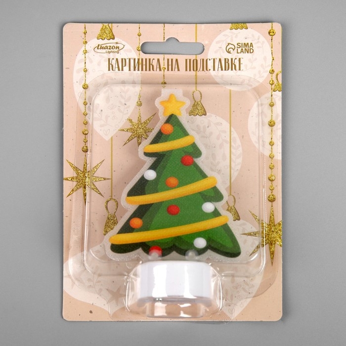 Световая картинка на подставке «Ёлочка» 11 см, батарейки, свечение тёплое белое